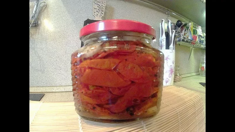 Лена, в духовке и на солнышке разный результат. На солнышке будут типа как из сушилки, а мне не нравится - они высушенные очень, а после духовки высушено-печеные, снизу от противня даже чуть поджареные. Но летом попробую пару помидор на солнышке сделать. Только это ж придется какой-то навесик слелать, чтобы мухи-муравьи не достали...Света, пробовала и в духовке, и в микроволновке, на солнышке интереснее для нас получилось. Половинки более цельные получаются, не расползаются на бутерброде при укусе. Вкус совсем другой, но на хорошем солнышке подержи 2 дня, чтобы не пересушить. Иначе только на чипсы потом или как приправа.. Закладывай в баночку и заливай маслом тогда, когда половинки еще толстенькие, мясистые, но уже гибкие. А вечером заноси в помещение от росы и влаги ночью.
