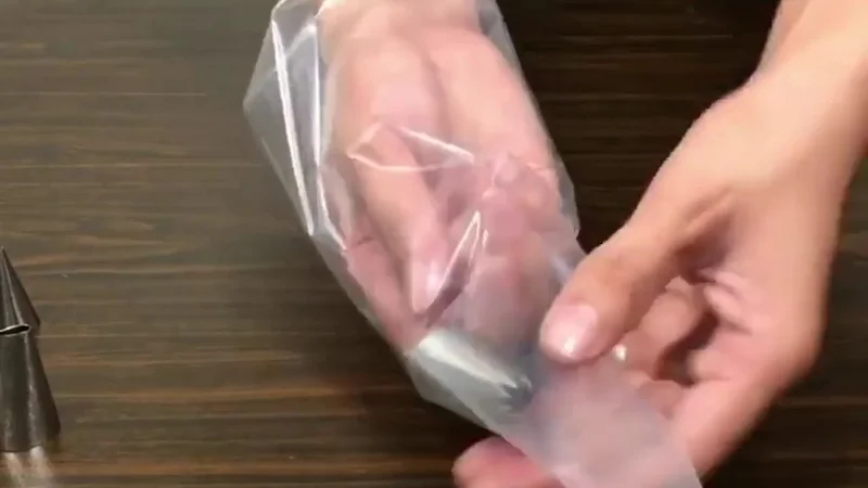 У меня просто обычный кулинарный мешок с насадками для тортов, так там есть специальная заручивалка, одну часть надеваешь внутрь мешка, а вторую заручиваешь снаружи, как пробку, а тут?