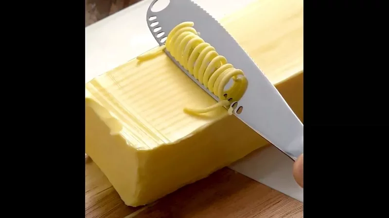 У нарезки масла всякими тонкими лепесточками, стружкой, лапшичкой и прочим, при помощи различных девайсов, не только декоративное предназначение, но и практический смысл. Измельчённое таким образом твёрдое подмёрзшее масло быстрее согревается и мягчает, что способствует возможности нормально намазывать это масло на что-то. Тут уже не важна ровность стружки/лапшички.