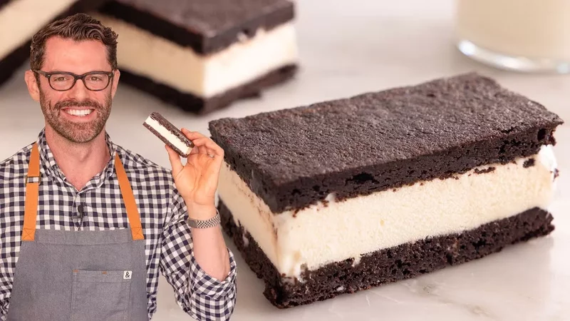 На печенье выложить сливки, разровнять. Закрыть слоем печенья. Поставить в морозильную камеру часа на 4. Достать, разрезать по контуру печений.