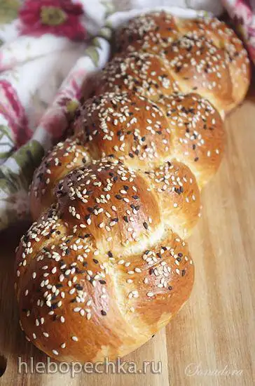 Перед отправкой в духовку смазать плетёнку яйцом, посыпать кунжутом.