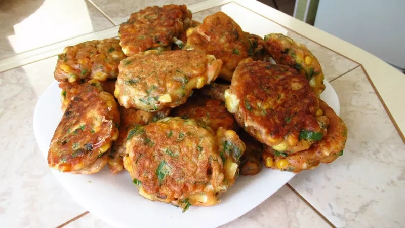 - добавить начинку в тесто, хорошо перемешать, жарить