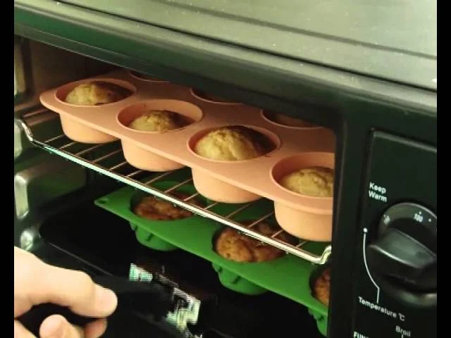 Обычная форма из тонкого алюминия с антипригарным покрытием, чёрная внутри, красная снаружи, как вывернутая галоша.