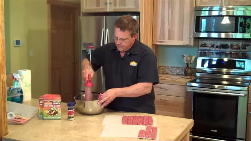 Теперь формируем джерки. Я для этой цели приобрела специальный "джерки ган" - пресс "пистолет", способный придать этой закуске вид тонких, толстых палочек и плоских полосок