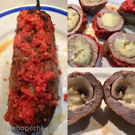 Завернула грибы в фарш, формовала на доске, без пленки.