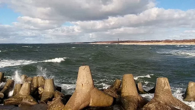 Говорят, несколько лет назад кто-то догадался разобрать старые немецкие волнорезы или они сами развалились за ветхостью. Как бы то ни было, во время сильного шторма 12-15 января 2012 года море просто «съело» городской пляж.