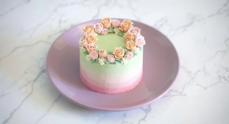 Бока подравнять. Бока торта обернуть ацетатной пленкой и надеть кольцо. Торт накрыть и отправить в холодильник на ночь.