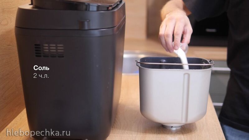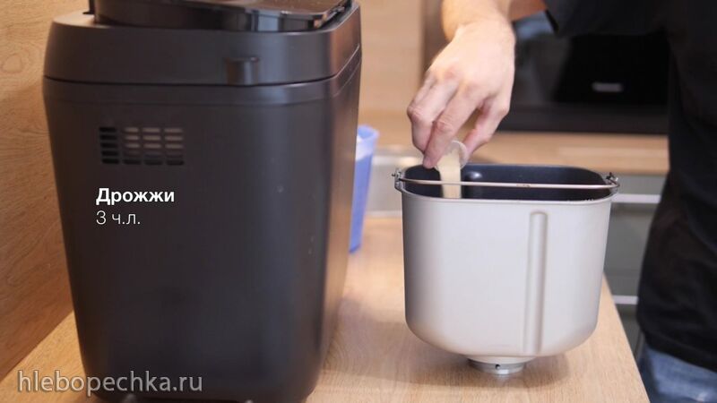 Сначала засыпаем дрожжи. Количество дрожжей немного большее, поскольку готовить мы будем на быстрой программе