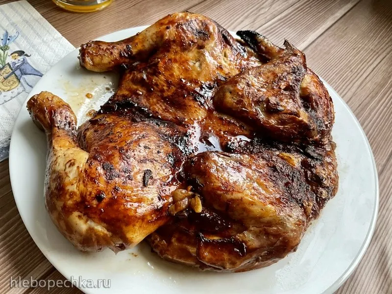 Но я, как положено по рецепту, поставила еще на несколько минут при температуре 200*, чтобы заколеровать курицу, получилась красота!!