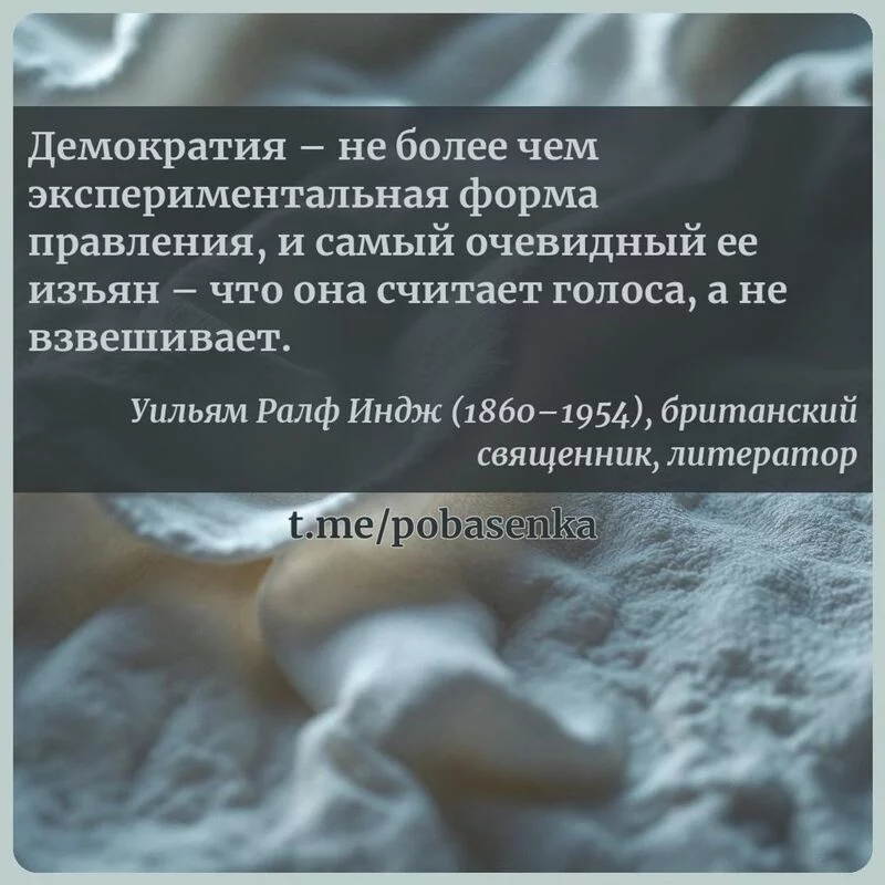 «Демократия не более чем экспериментальная форма правления, и самый очевидный ее изъян что она считает голоса, а не...» height="550" width="550"