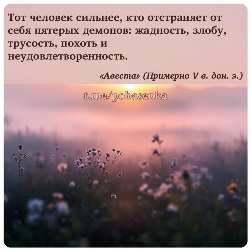 «Тот человек сильнее, кто отстраняет от себя пятерых демонов жадность, злобу, трусость, похоть и...» height="550" width="550"