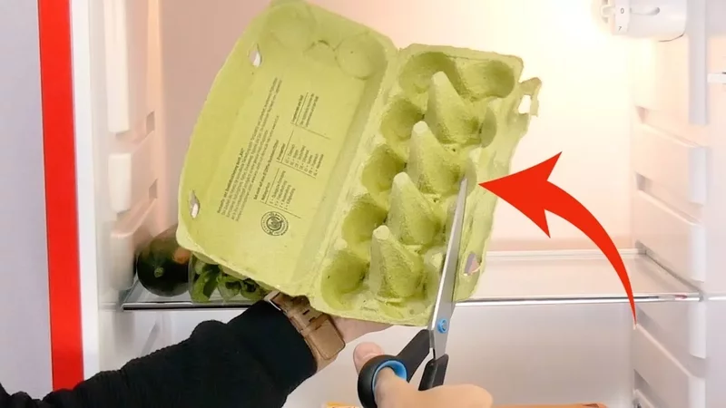 Картонные коробки из-под яиц можно использовать в качестве удобного органайзера для хранения приправ в вертикальном положении в холодильнике. Просто поставьте коробку в холодильник, и отдельные стаканчики будут держать приправы раздельно и вертикально, предотвращая проливание и беспорядок.