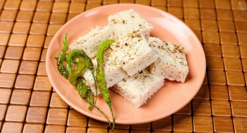 - Приготовление на пару: Ферментированное тесто готовится на пару, что обычно занимает около 15 минут. Благодаря этому процессу дхокла приобретает характерную пористую текстуру.