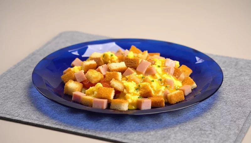 - Вылейте взбитые яйца на сковороду, равномерно распределяя по поверхности.