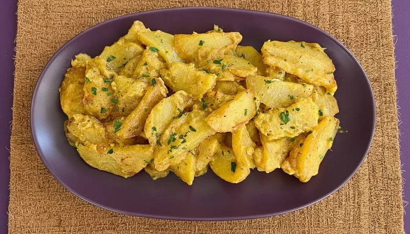 Картофель, заправленный андалузским соусом, можно подавать в качестве гарнира к мясу или рыбе, приготовленным на гриле. Он также хорошо сочетается со свежим зеленым салатом.