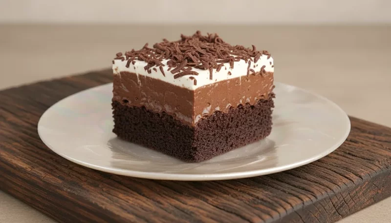 - В другой миске взбить 160 мл сливок на средней скорости до образования мягких пиков. Аккуратно добавьте эти взбитые сливки во взбитую шоколадную смесь, пока не останется белых полос.