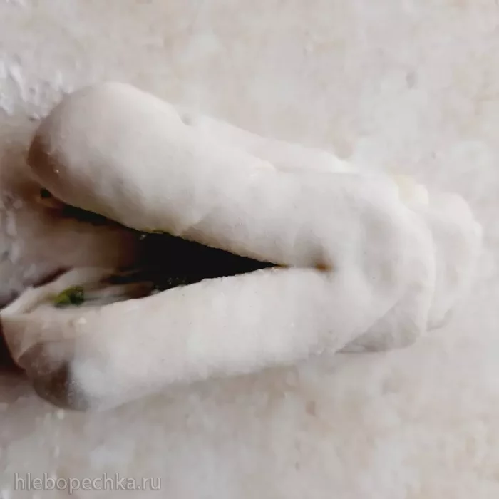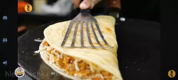 Сворачиваем пустую сторону лепешки к начинке, слегка придавливаем и обжариваем с двух сторон.
