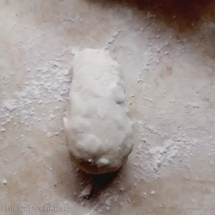 После отрываем кусочки теста, скатываем в колобок, придавливаем его в блинчик и присыпаем его мукой со всех сторон.