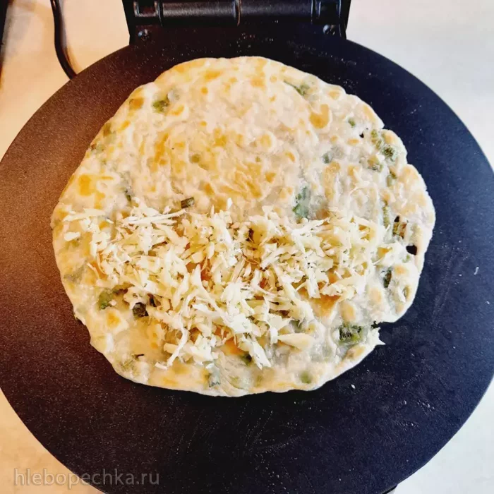 Пустой половиной лепешки накрыла начинку. Прикрыла крышку (ручкой не придавливала), немного подождала.