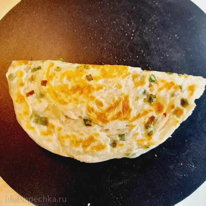 Лепешку вынула, положила в керамическую блинницу, пока обжаривала вторую лепешку.