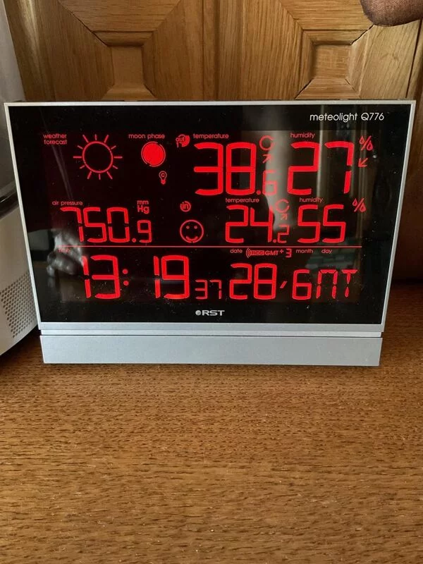 Пришла с тренировки, на улице неплохо, но метеостанции не нравится Это на солнышке. Дома, кстати, все кроме форточки закрыто и жалюзи опущены. Но пока без кондиционера. Валяюсь с маской на лице. Если не работать- нормально