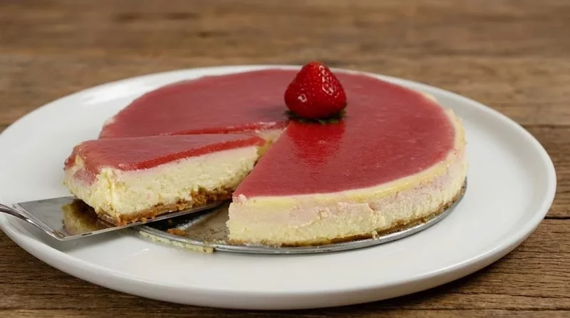 - Чтобы топпинг получился более глянцевым и гладким, процедите клубничный соус перед нанесением его на чизкейк.