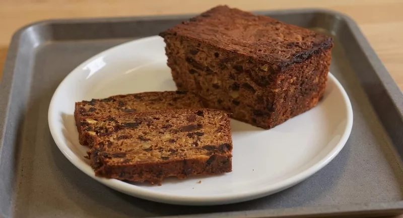 Автор заметила, что разрезать кекс лучше всего на следующий день; но, говорят, ещё лучше - на второй-третий день, тогда он «наберёт вкус». Я так и поступила - накрыла полотенцем и выждала, пока в доме кончится предыдущая сладкая выпечка...