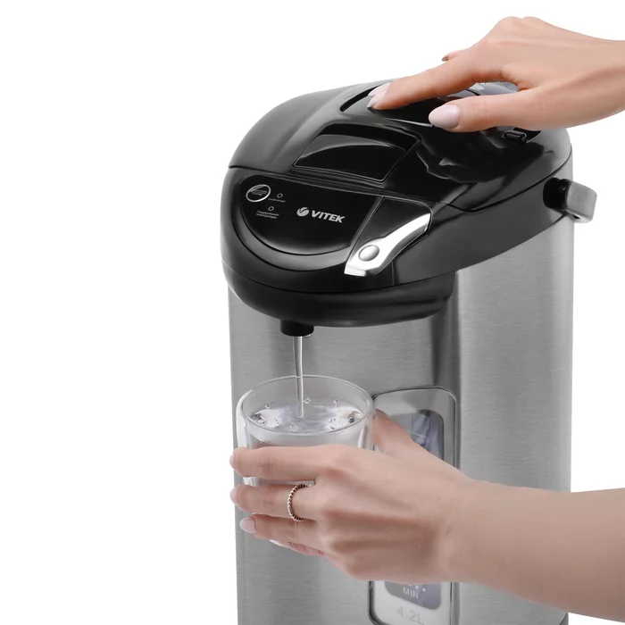 Термопот VITEK VT-1189 BK из нержавеющей стали отличается модным внешним видом.