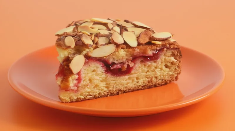 - Посыпьте кекс миндальными хлопьями.