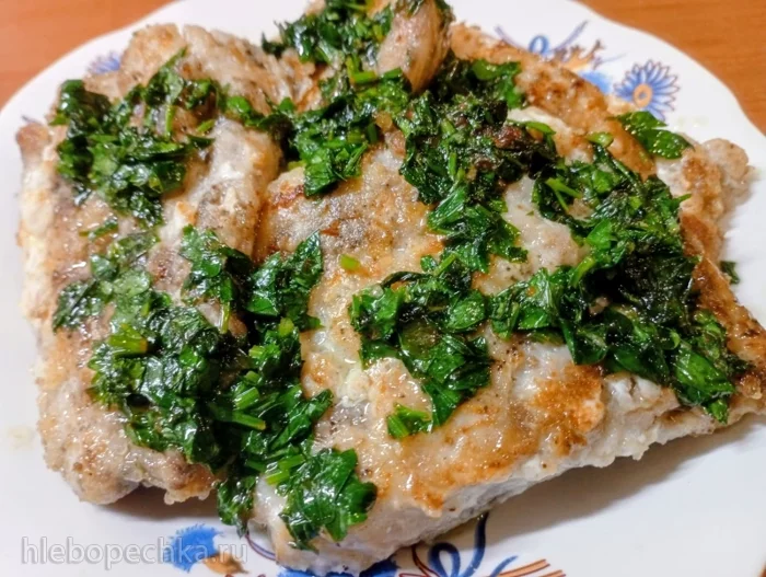 Выложить рыбу и при слабом нагреве – это важно! – при слабом нагреве обжарить её по 5 минут с обеих сторон, после окончания обжарки первой стороны добавить остальное масло. Затем рыбу выложить.