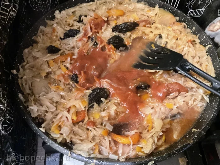 В капустке по этому рецепту не превалирует томатный вкус, иногда я даже не добаляю томатную пасту. Здесь томатная паста скорее для цвета и придания кислоты, если капуста не очень кислая.
