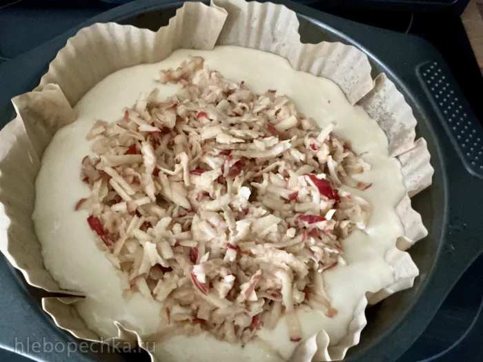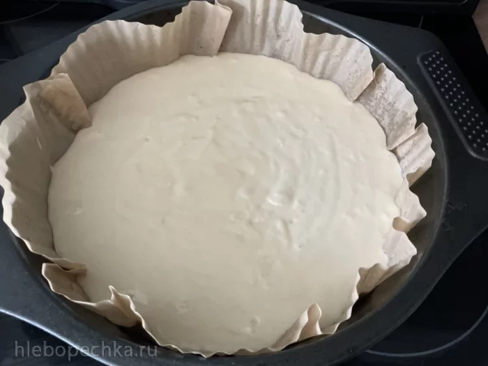 Тесто получается примерно как на оладьи, не густое и не жидкое, гладкое, хорошо переливается в форму.