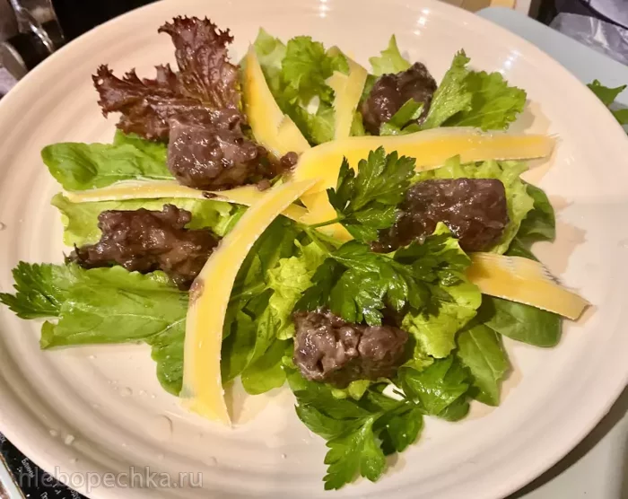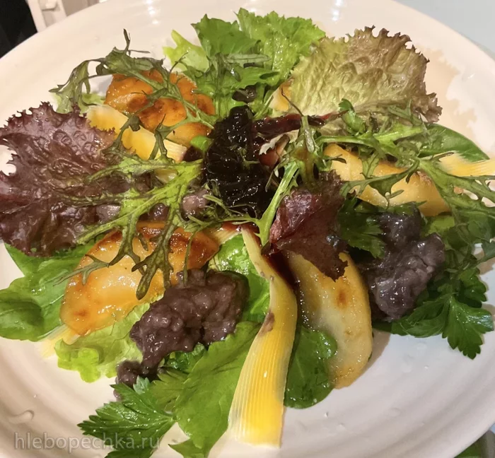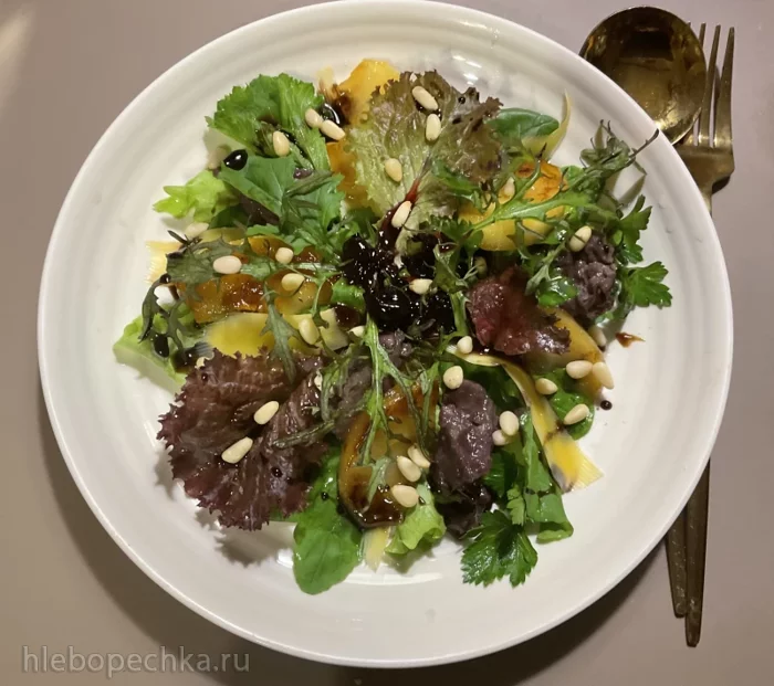 После того, как мы попробовали подобный салат на отдыхе в ресторане «Варенье», который находится на въезде на территорию Экопарка «Поляны» в Рязанской области, я потеряла покой.
