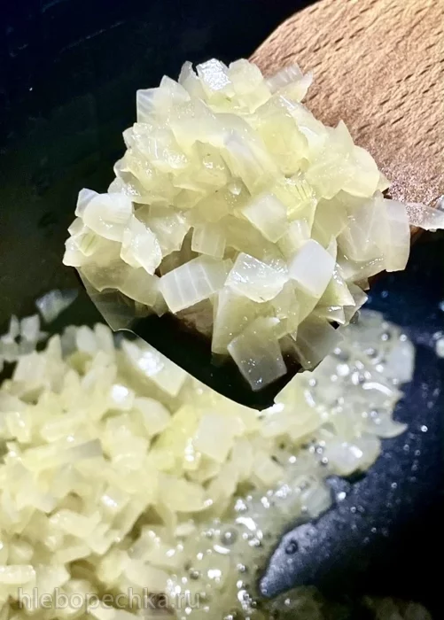 И перемешивая деревянной лопаточкой тушил до умягчения. Практически до состояния предпрозрачности.