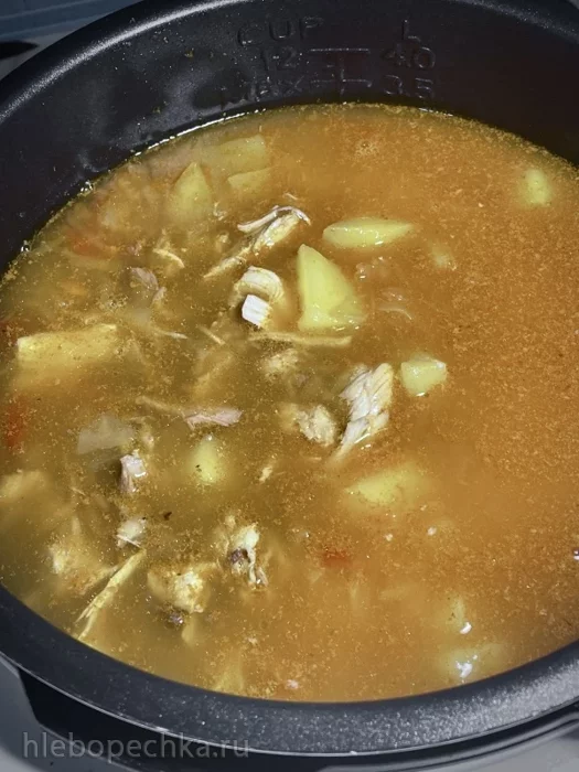 А потом закрыл агрегат крышкой, режим «Суп», время 30 минут, варил под давлением в режиме, то есть скороварки.