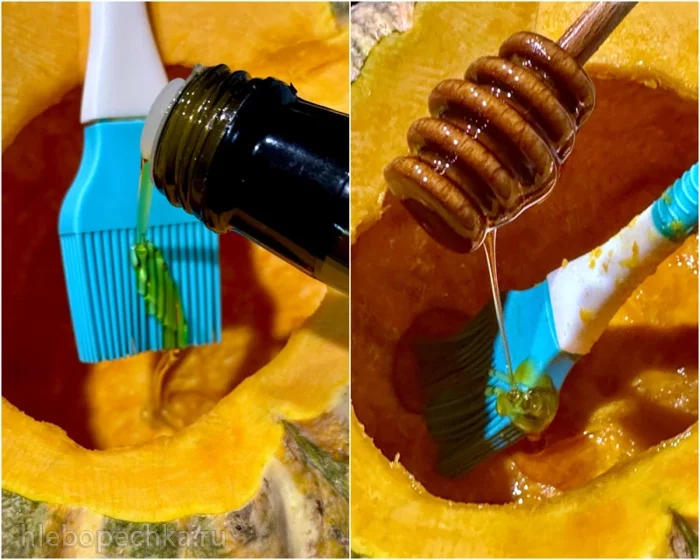 Смазал жабу изнутри. Сначала оливковым маслом, а поверх масла медом. Не очень обильно, но так чтобы образовался, все-таки, слой ощутимый.