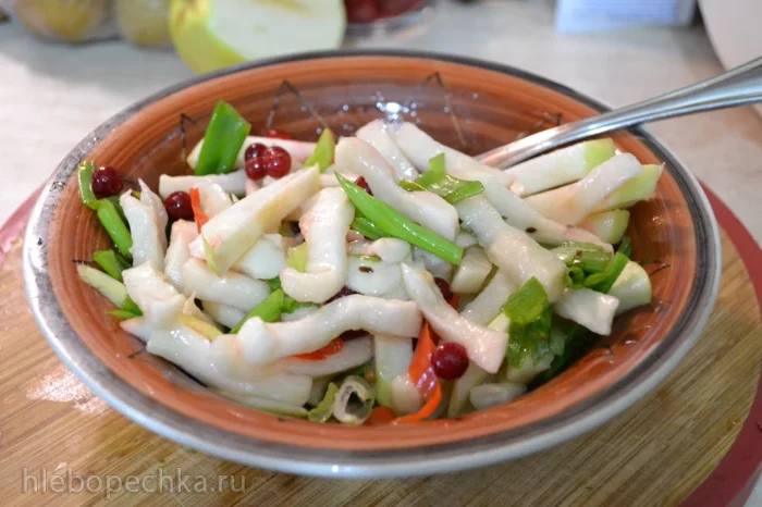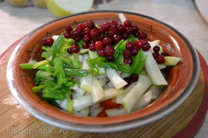 Кислое яблоко и кислые ягоды улучшают вкус дайкона и всего салата.