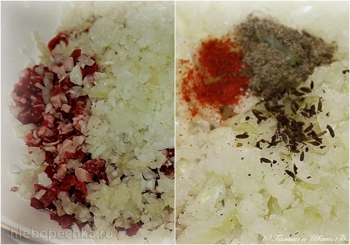 Затем добавили соли, перца черного и красного понемногу, зиры щепотку добрую (я молотую брать не стал, так ... потер слегка меж пальцами) ... вот и все специи.
