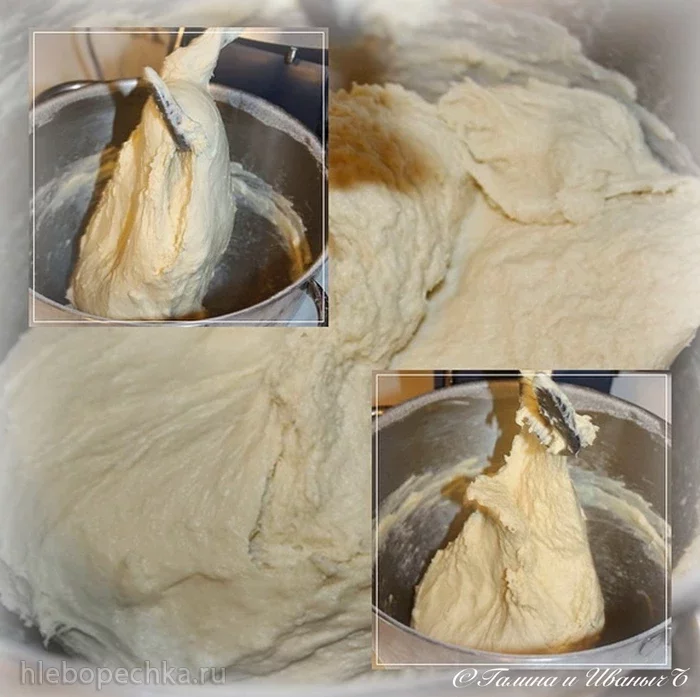 В процессе замешивания, контролируем консистенцию и добавляем муку. Добиваемся нужной густоты и упругости.