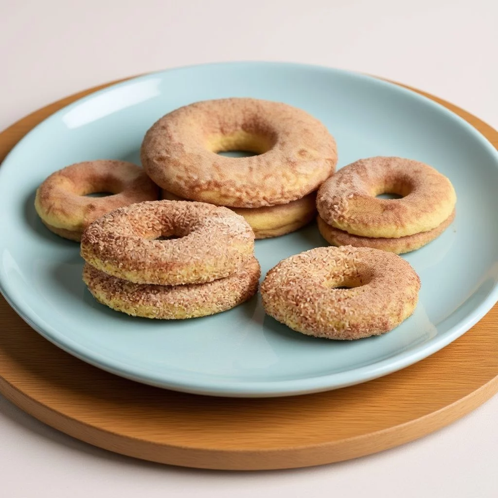 - Хотите начинённые центры? Сохраните вырезанные «дырочки», выпекайте их 8–10 минут и обваляйте так же — идеальные мини-пончики.
