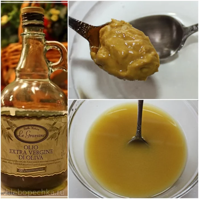 Итак, просто смешаем уксус, масло и горчицу. Пропорции? Никаких советов! Тут зависит от сортов масла и уксуса, и личных пристрастий.