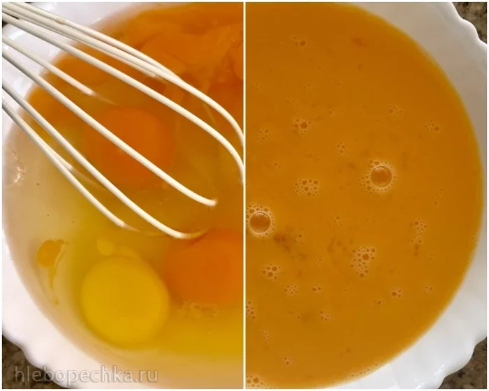 Пять куриных яиц. Выбил из скорлупок содержимое. И просто перемешал. Разболтал, Даже не пытался взбивать. Добавил соли немного. На кончике чайной ложки.