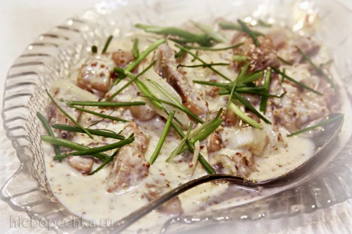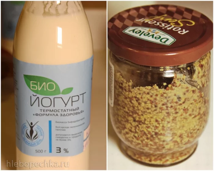 Горчица. Я взял что-то типа дижонской. С разными зернышками и немного острую. Но она не горькая. Хотя, для тех, кто любит пикантнее, можно взять и русскую. Или добавить русской к этой самой... дижонской.