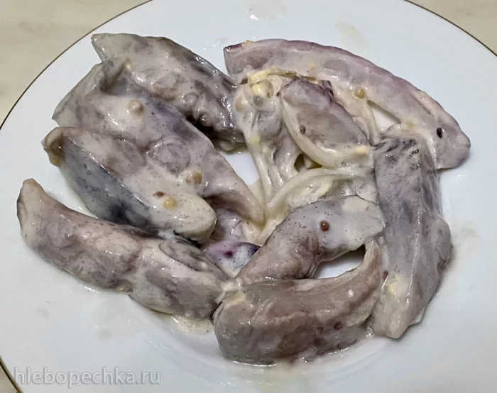 Как я уже говорил, что приготовление соуса для селедки – шаманство чистой воды. Соразмеряйте количества сахара и горчицы со своими вкусами и степенью просоленности селёдки. В общем, добейтесь сбалансированного по кислости-сладости-остроты вкуса.