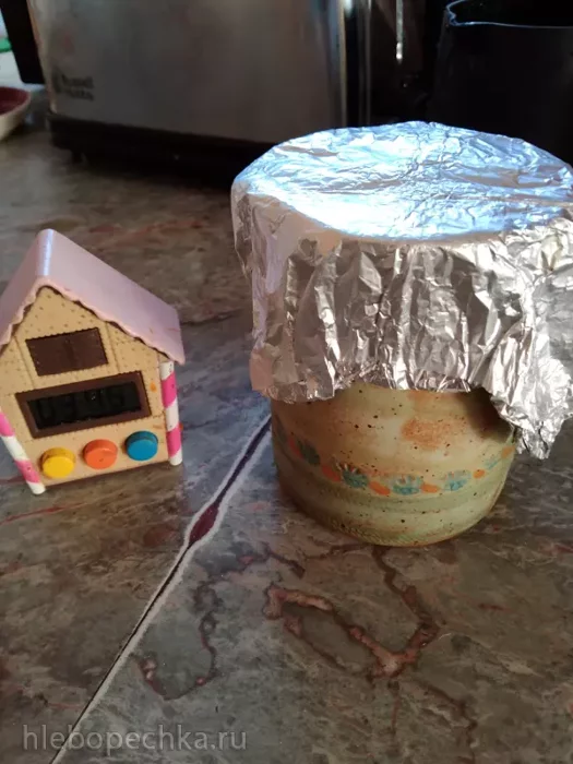 Заливаем водой и закрываем или крышкой или, как в моем случае пищевой фольгой в 4 слоя, для удержания тепла. И оставляем на 4 минуты, как советует автор.