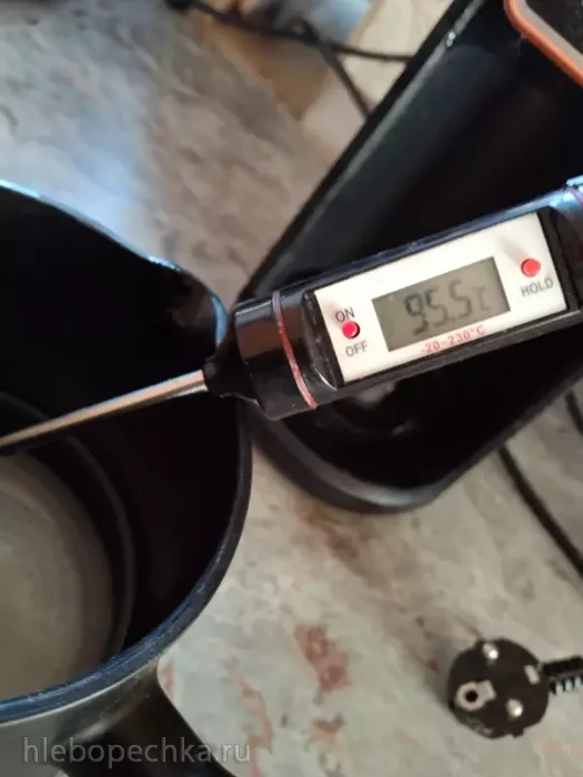 .Отсчитываем рекомендуемые автором ролика 15 секунд поставив в воду термометр. Но у меня получилось больше 15 секунд, т. к термометр набирал температуру. В конечном результате это было