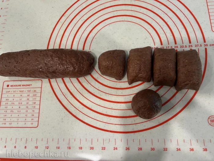 Из каждой половинки скручиваем «колбаски», делим каждую на пять частей и скатываем десять шариков.