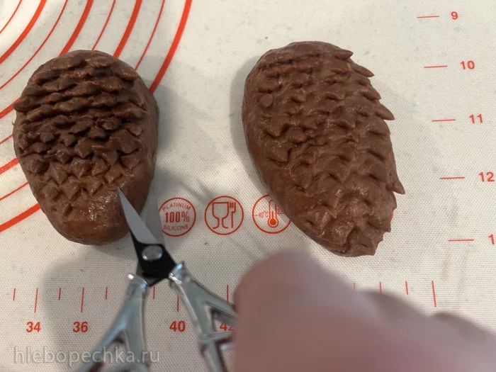 При помощи ножниц создаем на поверхности шишек чешуйки.