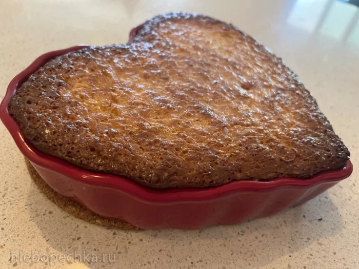 Всё хорошо перемешать и вылить в смазанную сливочным маслом, подходящую по размеру, форму. Моя высотой 5 см.