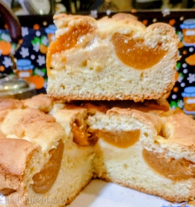 Фишка этого пирога - абрикосы из компота. Но это потому, что январь на дворе. А летом - свежие! И можно так же запекать в пироге нектарины, персики, сливы.